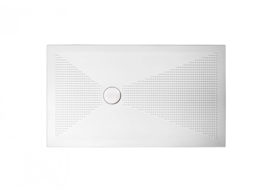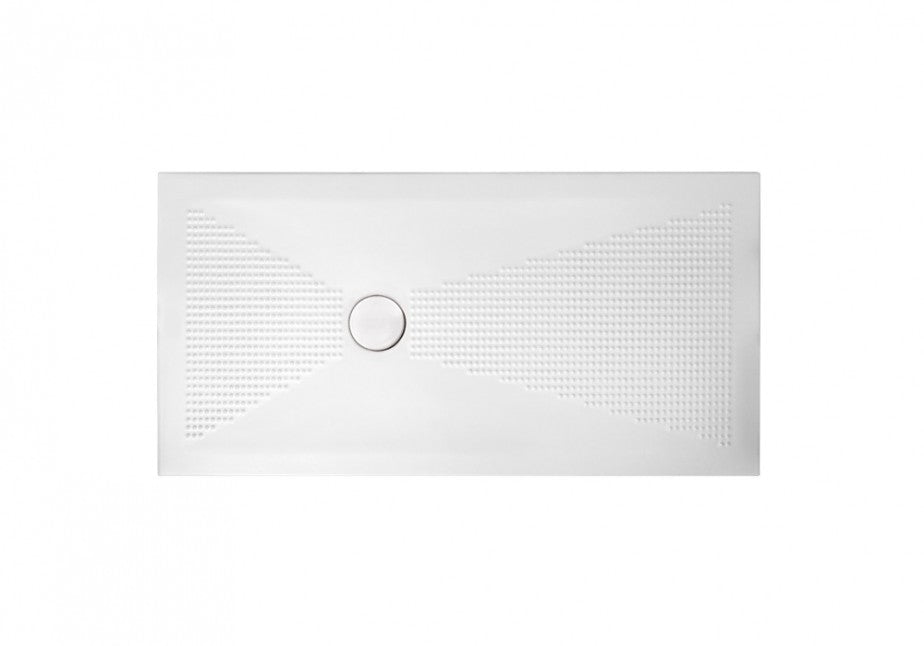 Piatto doccia in ceramica anti-scivolo con design moderno, reversibile e tagliabile su misura. Disponibile in 12 formati e 7 colori.